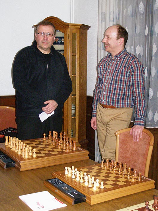 Bereits im letzten Sommer fand beim Spielabend der Schachvereinigung Lauterbach ein Kampf Mensch gegen Maschine statt. Der Vorsitzende Jürgen Struth und das Vereinsmitglied Andreas Klein sind beide passionierte Sammler alter Schachcomputer und bringen es zusammen auf über 60 Exemplare. Hatten bei der ersten Veranstaltung, in der die aktiven Spieler Lauterbachs gegen die Maschinen antragen, noch die Schachroboter im Mittelpunkt gestanden, so waren es diesmal leistungsstarke Geräte aus den 1980-er und 1990-er Jahren (derweil längst vom PC und Schachprogrammen aus der Geschichte gekickt, aber Symbole für Kreativität und Können vieler Programmierergenerationen), die den Menschen das Leben schwer machen sollten.