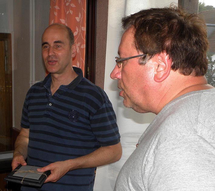 Vereinsvorsitzender Jürgen Struth bedankte sich bei Herda für die lange Mitgleidschaft und die Freundschaft, die auch über mehrere tausend Kilometer erhalten bleiben soll.